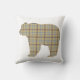 Bear Shape Plaid Tan Blue Cabin Core Throw Pillow