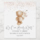 Baby shower wine and drink labels featuring the saying 'WE CAN BEARLY WAIT for baby to arrive!', rose gold confetti sprinkles, an illustration of a watercolor boho bear holding pampas grass, peach delicate flowers, gazing at a bumble bee. The font styles, size and colour can be changed by clciking on the customize further link after personalizing.