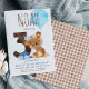This third birthday party invite features a teddy bear with blue party hat. Back of invite has a brown gingham pattern; perfect for boy's woodland forest animal theme 3rd birthday party. Personalize the invite with your details and you have the options to purchase printed invitations or a digital download.