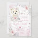Bear Winter Pastel Pink Snowflake Baby Shower Invitation