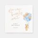 Celebrate the mom-to-be with these cute and simple modern baby shower "We can bearly wait" napkins featuring a watercolor drawing of a teddy bear with blue, tan and grey balloons.