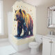 A majestic brown bear is surrounded by stars on this beautiful shwer curtain for anyone who loves wildlife, nature, and the outdoors.