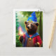 An image of a brown bear wizard with fire stick and wizard outfit.