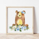 Bear, Woodland Animals, Boho, Blue Flowers Poster