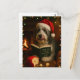 Humorous Christmas postcard featuring a Bearded collie dog reading 'The Cheese Tax at Home Regulations 2025' whilst trying to resist the urge to eat the cheese that someone's left on the table right in front of its nose!