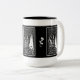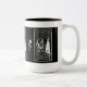 This mug features a reproduction of an illustration by Aubrey Beardsley, circa 1891, of a lady in a garden with a very impressive Peacock. White on black.