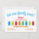 Une invitation pour l’anniversaire d’un enfant avec huit ours de gymnastique sur le devant. L'invitation a un motif d'ours rouges sur le dos. Tous les mots peuvent être customisés.