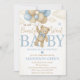 Fêtez l'arrivée d'un petit avec cette adorable invitation au baby shower ! Doté d'un design charmant d'un joli ours en peluche flottant avec un tas de ballons beiges et bleus, entouré de nuages doux et d'étoiles. L’expression ludique "We can bearly wait" ajoute une touche douce, ainsi que des détails personnalisables tels que le nom du bébé, la date de l’événement, l’heure et l’emplacement. Parfait pour les parents à la recherche d'un thème chaleureux et fantaisiste pour leur baby shower. Conçue dans des tons pastel doux, cette invitation apporte une ambiance cosy et joyeuse à votre célébration spéciale.