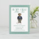 Celebrate your little one’s first birthday with this Beary First Par-Tee golf birthday invitation featuring a classic teddy bear golfer and bold green stripes. A preppy, elegant design perfect for a golf-themed first birthday party, country club celebration, or classic green party decor.