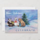 Un ours à panda, un ours polaire et un ours brun tiennent des cadeaux de Noël sur un terrain couvert de neige avec un arbre à feuillage persistant en arrière - plan. Le message de la carte d'invitation de vacances dit "Fêtes de la Béary" et "CÉLÉBRER". Le verso de la carte d'invitation contient les détails de la fête de vacances. Customisez cette carte avec toutes vos options personnalisées !