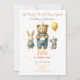 Célébrez une journée spéciale avec notre carte d'invitation enchanteresse fête d'anniversaire, avec un adorable ours avec un tambour, un lapin sucré avec un gâteau, et une souris joyeuse avec un ballon. Parfait pour ajouter une touche de fantaisie et de charme à la célébration d'anniversaire de votre enfant. Faites de la fête d'anniversaire de votre enfant une fête inoubliable avec cette carte d'invitation délicieuse et personnalisable. Commandez maintenant et commencez à planifier la fête parfaite!