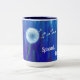 Beautiful, unique, blue dandelion mug with cheerful message; original alcohol ink print which is great for gifts or encouragement.