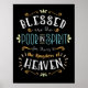 Beautiful scripture verse art biblical Beatitudes poster featuring hand lettering style and design ornaments and accents surrounding typography on dark background includes the words, "“Blessed are the poor in spirit, for theirs is the kingdom of heaven.." This beloved scripture is an excerpt from Jesus' sermon on the Mount in Gospel of Matthew, Chapter 5.