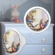 Personalize this knob pull printed with a cute Beatrix Potter illustration art image of rabbit family Created in soft peach orange, blues and browns with a blue circle border accent. Nice nursery or toddler room accent, coordinates with lamps, clock, pillow, and other nursery decor items at www.zazzle.com/kidsunique
