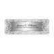 Elégant bel arrière - plan gris argent glamour avec look métallique brillant avec damas blanc et dentelle florale à chaque extrémité. Étiquette d'adresse de retour personnalisable. Police de couleur noire suggérée pour un contraste agréable.