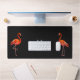 Beau flamants roses et monogramme sur le Mat de bureau presque noir.