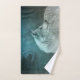Serviette à main avec une photo d'un magnifique loup gris et velouté. Dans l'arrière - plan est une forêt sombre avec des arbres. Vibe mystique magique.