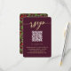 Cette élégante carte d'accueil de mariage dispose d'un endroit pour votre code QR afin que les invités puissent facilement s'enregistrer sur votre site mariage. L'avant présente une disposition simple et propre avec une typographie script branchée et un arrière - plan marsala bordeaux. Le dos est une belle baie botanique et des imprimés de vacances verdoyants, parfait pour un mariage de Noël ou d'hiver.