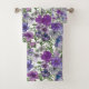 Joli ensemble de serviettes de bain bleu & violet fleurs à motifs floraux.