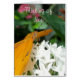 Sur la couverture de cette carte se trouve une photo du Wisconsin d'un papillon de couleur orange vif assis sur un groupe de jolies fleurs blanches. Le texte dit, "Penser à vous" sur le devant et "Vous manquant" à l'intérieur.