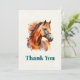 Carte de remerciements avec une belle illustration. Tête de cheval couleur châtaignier et haut du corps. Avec des patchs d'aquarelle derrière.
