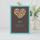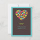 Un coeur de coeur design dans les tons lumineux de turquoise, de citron vert, d'orange et de rose chaud - fait une carte RSVP amusante et joyeuse.