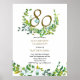 Beautiful elegant green leaf and white floral design poster for the promotion of an 80th birthday party event for a man or woman, parent, mother or father. Simply edit the text to suit your exact needs. It has modern handwritten and calligraphy style fonts in gold and black.