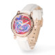 An elegant rose gold watch with a beautiful pink, red and blue liquified abstract design. This pretty watch comes with an elegant white leather wristband. The watch face has a text message. Text and photos are customizable, and can be easily personalized to fit your needs. This unique and beautiful watch is the best gift for your wife, girlfriend and mom. Great gift for birthday, wedding, anniversary, holiday, Valentine’s Day, Mother’s Day , and for yourself!