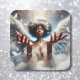 Ethereal surreal art. Pretty ai illustration of a beautiful African-American angel with her hands out like she's offering some good energy.