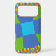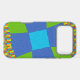 Central Square Design: The square motif features alternating blue and green sections, creating depth and dimension with varying shades.