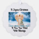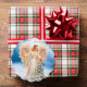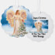 Beautiful picture of an angel with a tree and a cardinal, is featured on this scalloped paper ornament card for Christmas. Angel is on both sides of the ornament with message on one side, "A Joyous Christmas, A New Year Filled With Blessings". Includes ribbon to hang the ornament with, a lovely greeting card to send family and friends for the Holidays!
