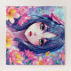 Pretty purple and pink flowers and anime girl with striking eyes feminine puzzle.