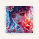 Beautiful Anime Girl Glitchcore Floral Notebook