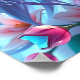 Anime poster. A beautiful girl with pink eyes, flowers and musical notes glitchcore art. Purple and pink floral accents.
