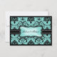 Beautiful Aqua Blue & Black Damask RSVP Cards