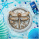 Gorgeous Art Deco Dragonfly tile, paper plates with glass wings, pretty pearls, white enamel flowers and gold leaf filigree. Light blue background can be changed to your liking.