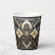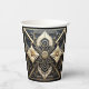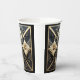 Elegant vintage Art Deco design paper cups in creamy ivory, black, gold. Lovely floral with gold centres, geometric lines and angles and elegant gold and black metallic beads on black.