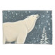 A fun artsy design featuring an enchanting majestic Polar Bear looking up into the Artic night sky, while large fluffy white snowflakes are falling down all around him.