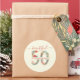 Stickers for the 50th Birthday Celebration featuring the message, "Beautiful" in modern calligraphy script "at" then then birthday gal's name in the middle of the number 50 (featuring floral letters).