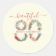Stickers for the 80th Birthday Celebration featuring the message, "Beautiful" in modern calligraphy script "at" then then birthday gal's name in the middle of the number 80 (featuring floral letters).