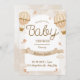 Beige And White Watercolor Illustrative Cute Baby Shower Greeting Invitation