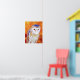 A creative orange and purple toned poster with a digital rendering of a beautiful barn owl with a white face.