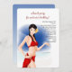 A beach beauty dressed in a red bikini with a flower in her hair is featured on a beach background with a blue sky. A lovely invitation for a girl's beach birthday party or luau. Want to save money? Print with the basic square edge paper.