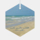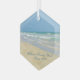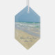 Beautiful beach ornament with gorgeous seaside photography featuring a pretty sandpiper standing at the edge of the ocean waves on a sunny summer day. Lovely blue green water waves roll onto the sandy shore where your name is personalized in cute teal typography. A beautiful Christmas gift for a daughter, mom, grandmother, or granddaughter.