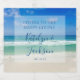 This beautiful beach wedding sparkling wine label features a gorgeous photo of the ocean waves for a destination wedding. Pretty beach photography paired with elegant white and blue typography creates a chic, modern look for a tropical island event. Lovely personalized seaside labels.
