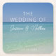 This beautiful beach wedding square coaster features a serene photograph of the ocean horizon for a destination wedding on the coast during the summer. Treat your guests to this lovely tropical reception decor on a seaside afternoon at your favourite island with this pretty photography. Completed with chic white script for an upscale coastal look.