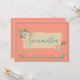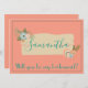 A lovely bridesmaid proposal card, her name is written in teal cursive font on a beautiful banner combined with a peach coloured background. "Will You be my bridesmaid" is written at the bottom also in teal. Order yours today!