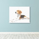 This canvas features my painting of a beautiful Beagle, one of my favourite breeds of dogs. The background colour can be changed.