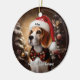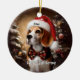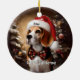 Beautiful Beagle with Santa Hat Ceramic Ornament