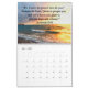 Share your love, peace, hope and faith with this inspiring bible and scripture quotes calendar. Believe in the power of God to transform your life to be happy, joyous, and free. Show your belief and hope in God's love and blessings with this motivational Bible quotes calendar with beautiful sunrise and sunset photos. This encouraging calendar will be a wonderful reminder month after month to believe and trust in God. Spread the good news to relax, because God is in charge.